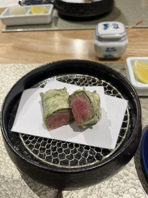 天ぷらで水茄子素材の味が引き立つ!生ハムと水茄子が口の中で溶け合って美味!