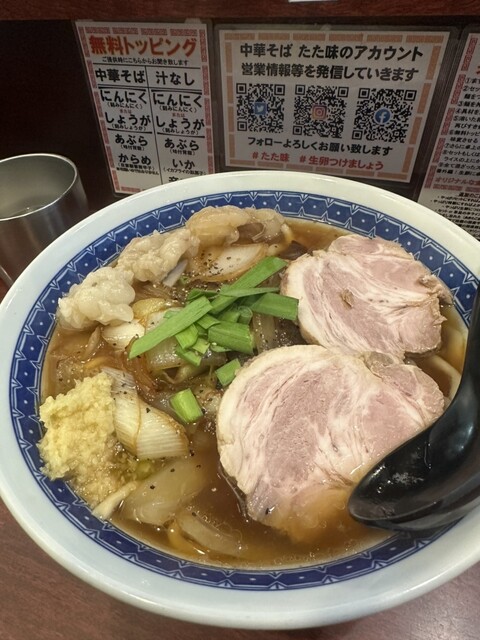 待っている時に氷水や冷たいおしぼりのサービスが嬉しいです。中華そばをいただきました。