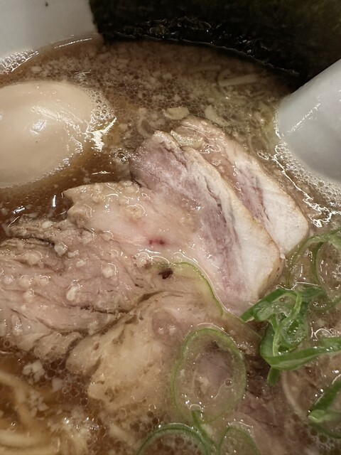 今までで一番食べるまで時間がかかりました。もちもち雲吞味玉中華そばをいただきました。