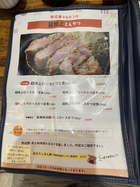 ただ外で突然注文を聞かれて、開いてるメニューページから答えたけど、一つ前のページが実はあって、超特選や特選など魅力的なブランド豚のページが存在してた事に後で気づいた。