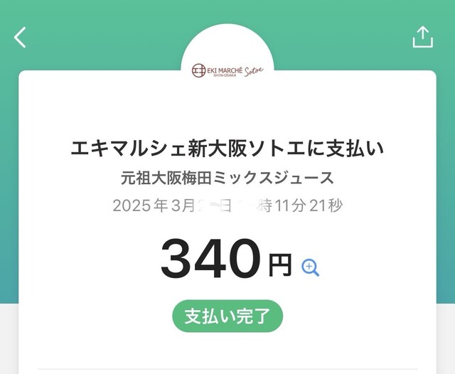 これが、元祖ミックスジュース!めちゃ、美味しいじゃん。リピ確。こちらは改札外のお店です。