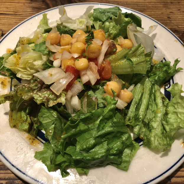 ひよこ豆と香菜サラダ。タンドリーチキン2種。