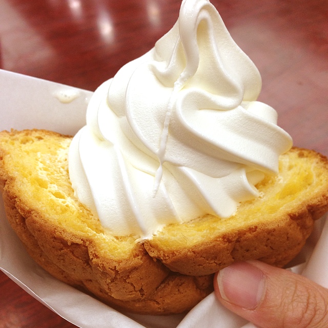 上郷サービスエリアにある、メロンパンとアイスのコラボ。うまいけど食いにくい。