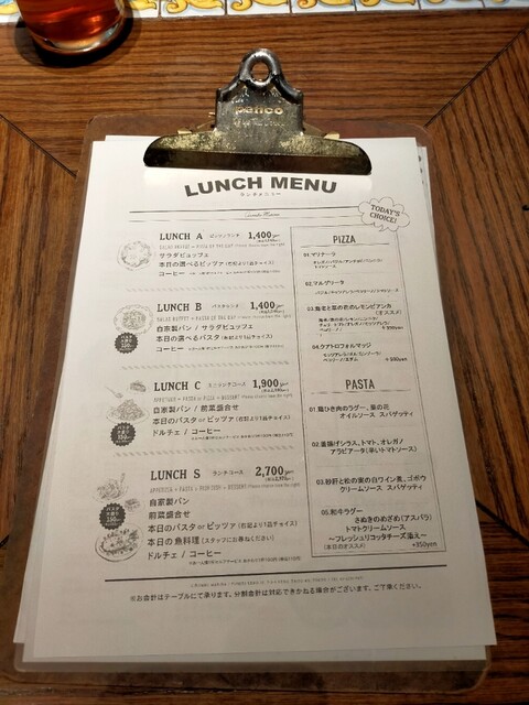 ランチセットA・B・Cでそれぞれピザ、パスタセットかコースの3種類