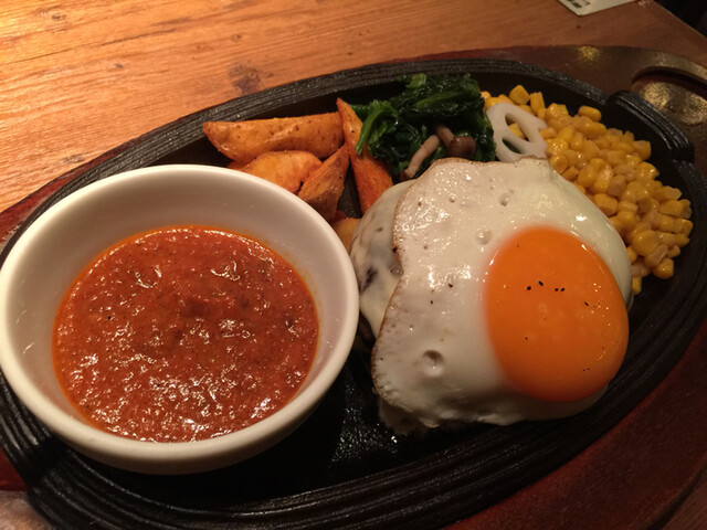 ハンバーグは表面を軽く焼き、スチームオーブンにて作ってるみたいです。