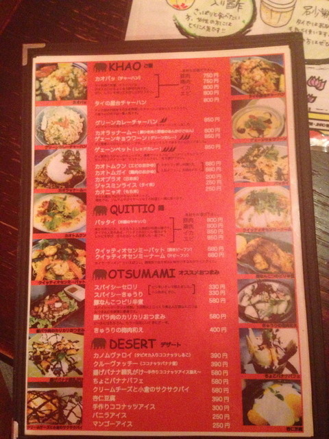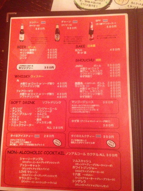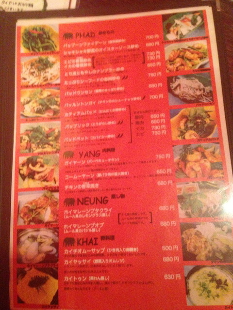 メニュー3。真っ先に頼むのが、パッタイ。改めて値段みると意外にいい値段するね。