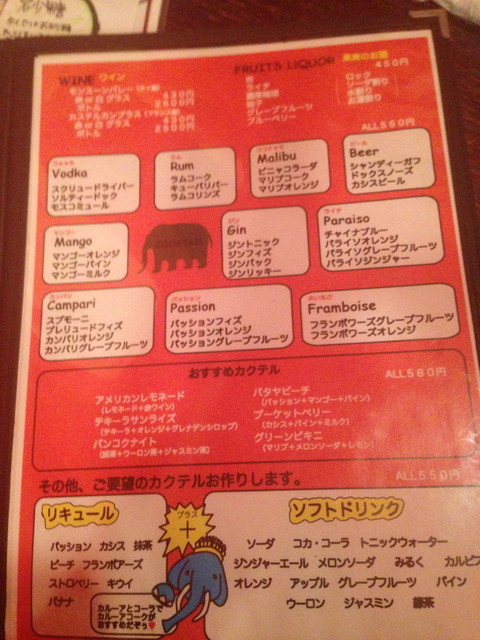ドリンクメニューその1。狙い目は左上!!