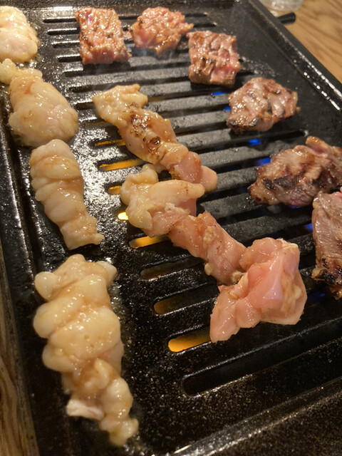 肉は、ハラミ、鶏肉、ホルモンの盛り。