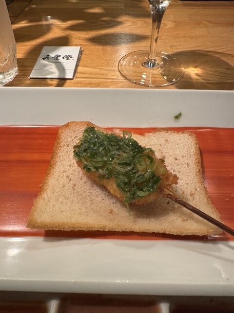 相変わらず客層も良く、空間の雰囲気も良く,大好きなお店のひとつです。今回そーいや手書きメニューなかったな。串の提供の時、喋ってたりして一瞬聞き逃すんですよね。聞き直すのも申し訳なくてツレに『コレ何って言ってた?』って確認するも、ツレも『聞こえんかった』ということが多発…笑笑
