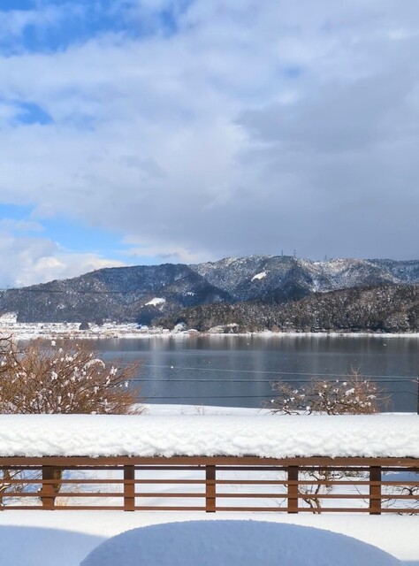 雪の余呉湖(鏡湖)。ステキな風景でした。♡