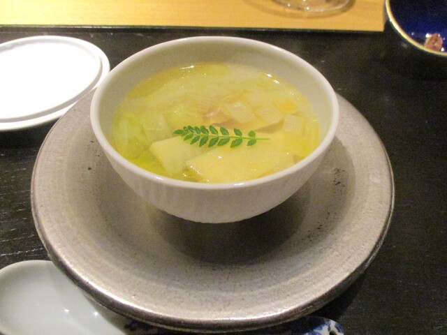 ◎ 蛤のスープ 春キャベツ 筍に 木の芽。