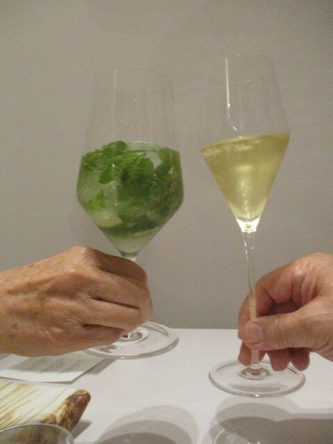 ふたりで乾杯ぁ~イ! 家内はミント&ライムのノンアルコールカクテル。