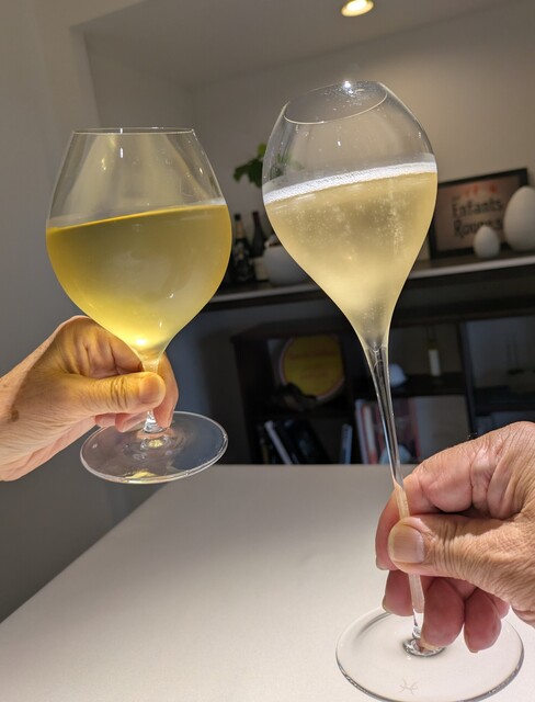 シャンパン(私)とグレープフルーツジュース(家内)で