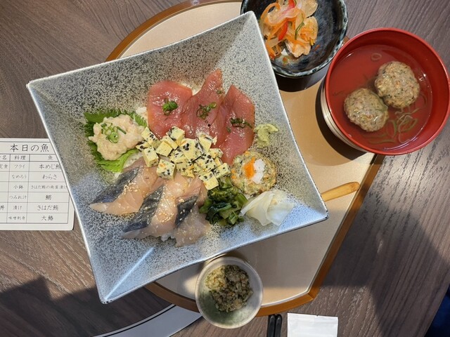 鯵のさんが焼き、本メジ鮪フライ、わらさのなめろう、きはだ鮪の南蛮漬けの小鉢、鰯のつみれ汁、鯨竜田揚げ、青唐さんが味噌、などなどどれもこれも新鮮で美味しい!それからアジフライは外がサクサクの中はフワフワでそれはそれは美味しい事。大満足で、良い旅行のスタートを切れました。
