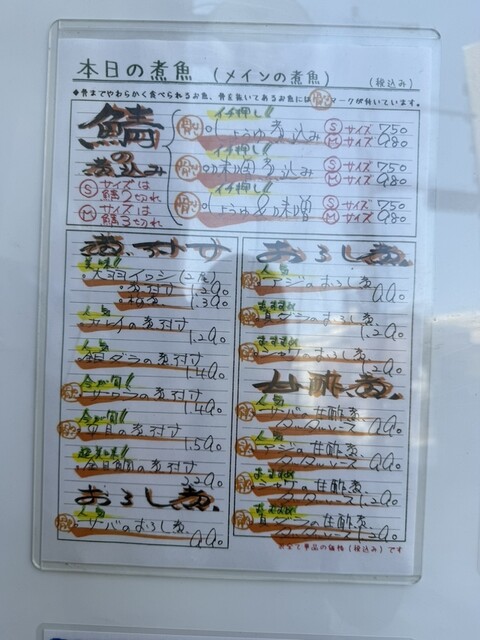メニューは名物の"鯖"をメインに様々な魚の煮付け、おろし煮、甘酢煮が用意されている。