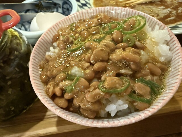 更に選べる小鉢が付いたBセットにして納豆(生玉子付き)にした!