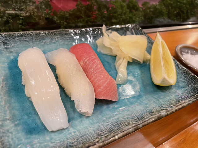 いつもはお刺身からスタートしますが、この日はにぎりから。白身、マグロ、貝、魚卵と、ガッツリ出していただきました。貝類を塩で食べようか醤油で食べようか迷っていると、「好きなように食べてもらって大丈夫です」と大将。どう食べようが美味いものは美味いという大将の自信を感じます。腹がはち切れそうになっても食べたいという欲望は衰えません。