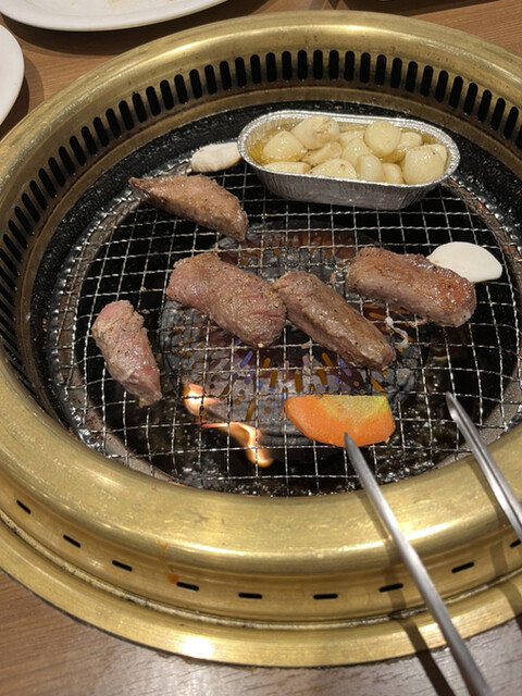 まずはビールで乾杯しつつ、注文したのは、特上ランプ、特上ロース、特上タン、特上ヒレなど特上縛りの肉のほか、キムチやニンニク、ホルモンのミノ、締めのカルビうどんなどです。いずれの肉もこの値段でこの味は奇跡かと思います。特筆すべきはやはり特上ランプでしょうか、焼肉ジャンボの野原焼きの小型版のようで最高です。ドリンクも秀逸で、グラスワイン400円など激安です。日本酒やらハイボールたらも頼んで、これで1人8000円くらいですので、コスパでは日本一ではないでしょうか。20:20の退店時にも、入店待ちのお客さんが大勢いました。ずっと通いたい店です。