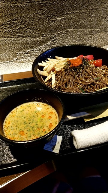 鶏そばはつけ汁が坦々風で肉そばは和風。