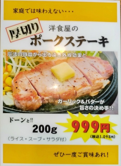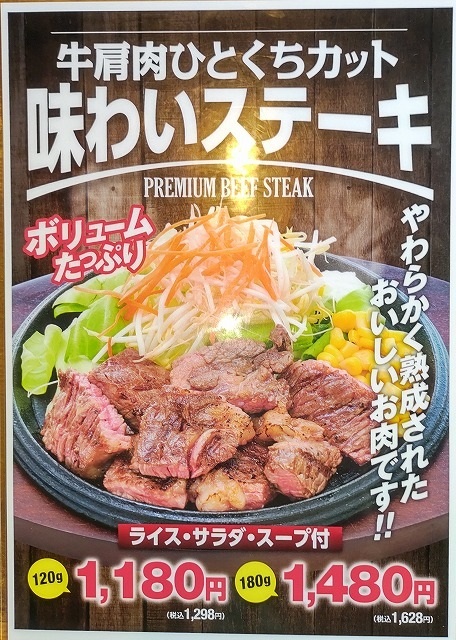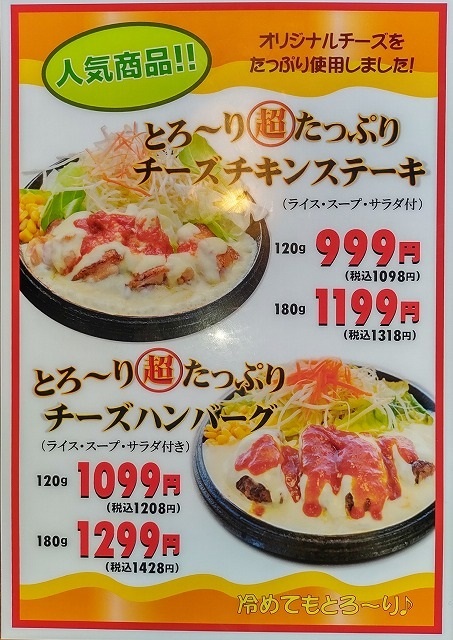 「焼き立てハンバーグ」のダブルサイズ(240g)が税込みで1098円になりました。定価は、1318円です。