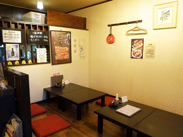 右側には小上がり席、左側にはテーブル席がある。