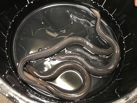 まず、これから裂く泰正オーガニック鰻の活鰻を見せていただく。