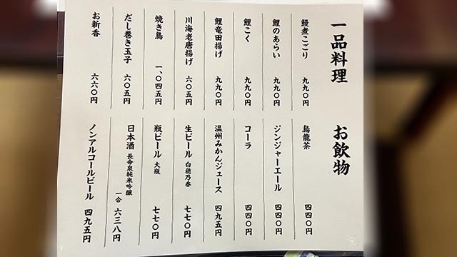 メニューを拝見