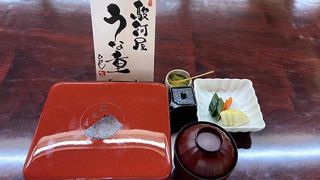 成田山総門脇『駿河屋』にて〈うな重〉の蓋を開けるお重の蓋を開けると