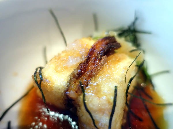 薬味を外すと、豆腐に挟まれた鰻様が登場!