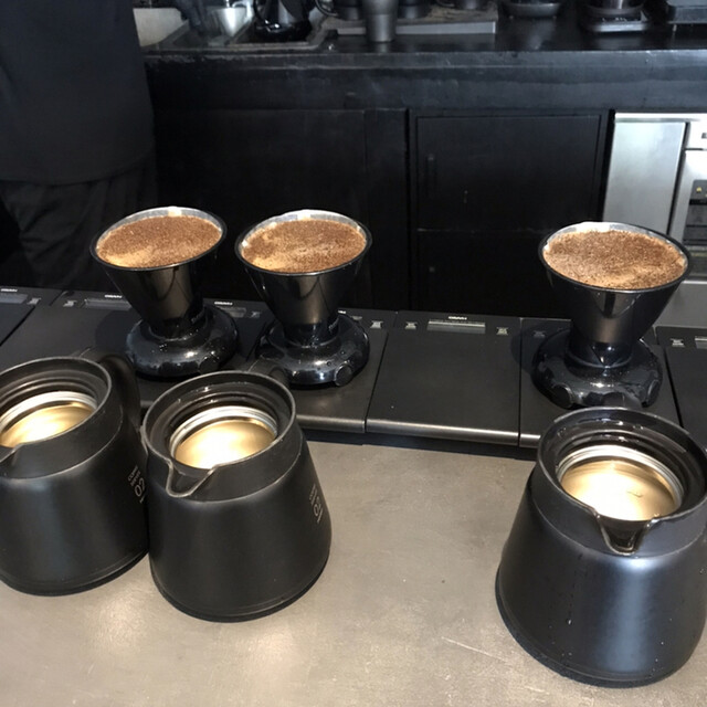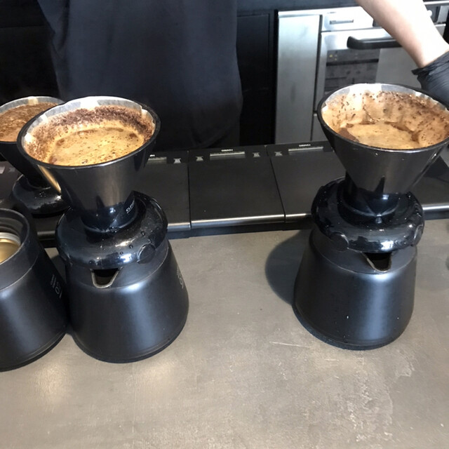 抽出はカッピングを参考にしているらしく、底に栓の付いたドリッパーで5分ぐらい滲出させて、最後にペーパーで濾すというスタイルです。