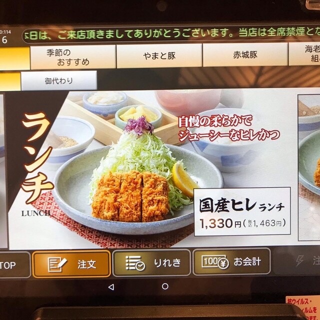 国産ヒレランチを頂きました。お肉が柔らかくてジューシーです。美味い。