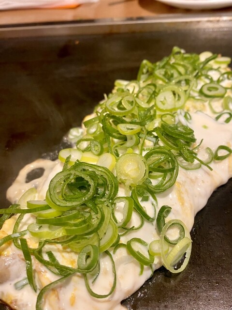 念願の来店で期待が膨む…。何枚でも食べたい勢いでしたが、それは無理なので。。。牡蠣鉄板焼機→九条ねぎどっさりお好み焼き→とんぺい焼→チーズ焼きをオーダー!