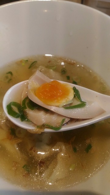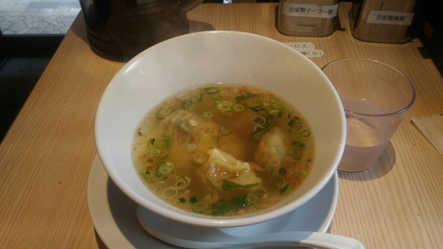 そしてメインの雲呑到着。塩と醤油のスープが選べますが、やっぱり塩でしょう。到着して
