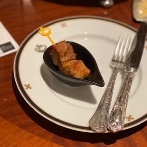 生ハムを巻いた鯛のフリット(「こんな食べ方がぁあああ」と衝撃を食らった一品)。