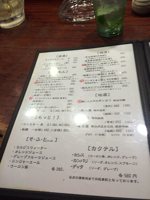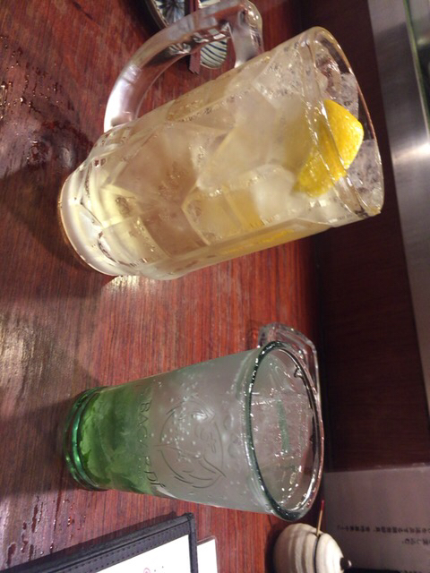 サイコロシステムの角ハイボールとミントではなく紫蘇の入った和ヒートを頼んで、乾杯。