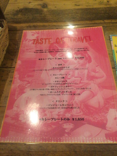 この日はカレープレートのメニュー前菜とドリンクがついて2350円。