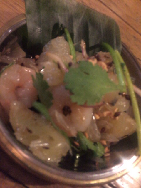 海老にパクチーやナッツが入ってスパイスが効いて美味しい。初めての味。