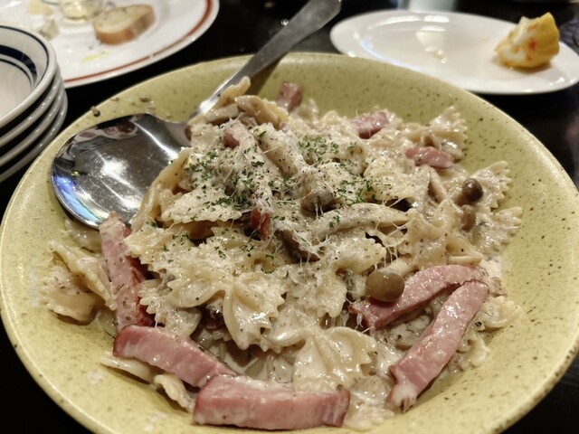 海鮮パエリアは魚介がふんだんに乗ってて、それをつまみにずっと呑んでられます。ハモンセラーノのうまみとピクルスの酸味をループしてたら、それだけでずっと呑んでられます。ブロックみたいなパテドカンパーニュの口溶けとワイン。ショートパスタとワイン。鼻に突き抜けるブルーチーズの香りとワイン。柔らかなトリッパとひよこ豆の煮込みとワイン。全部美味しくてとにかくお酒が進みまくりでした。大勢で行くも良し。ひとりで呑むにも良いお店です。