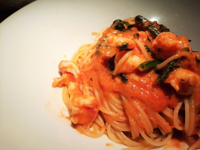 ・パスタ:スパゲッティ 海老とほうれん草のトマトクリームソース