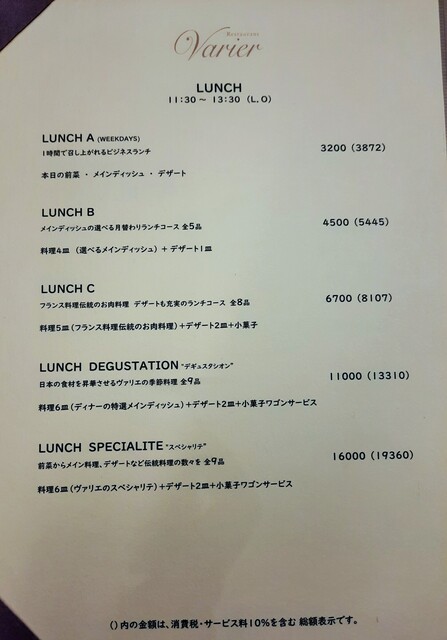 ・LUNCH DEGUSTATION 13,310円:前菜5品、メイン、デザート2品、小菓子