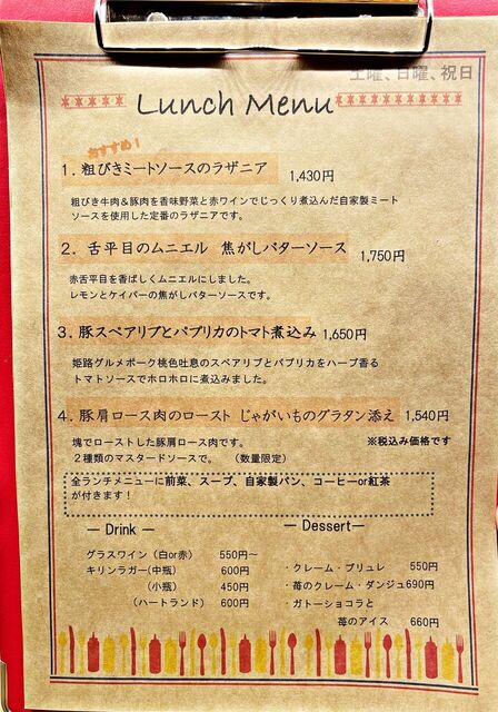 ランチは金曜・土曜・日曜・祝日の営業です。