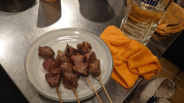 私クラスになると登場しただけでキャストがウイソー大氷無しを出してくれます。この日はやや東の店員さんが退職するので挨拶に行くため、いつものタンモトハツシオではなく、軽く赤獅子タレ2本にとどめました。