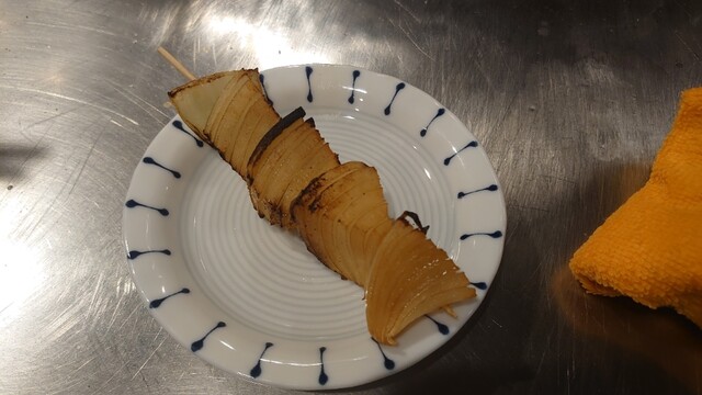 この日は先週休みだった土曜の焼き担当のケンちゃんが復活していました。ウルトラを焼く醤油につけてニンニクや玉ねぎを焼くのを提案してきたので、焼き台前のおなじみさんたちが俺も俺もと注文した波に乗って私も注文。これが絶品でした。