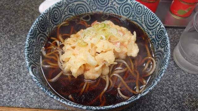 朝から危険な暑さのため、冷やし天ぷらそばにしました。