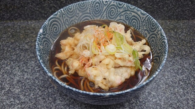 涼しい朝だったのであったかい天ぷらそばにしました。