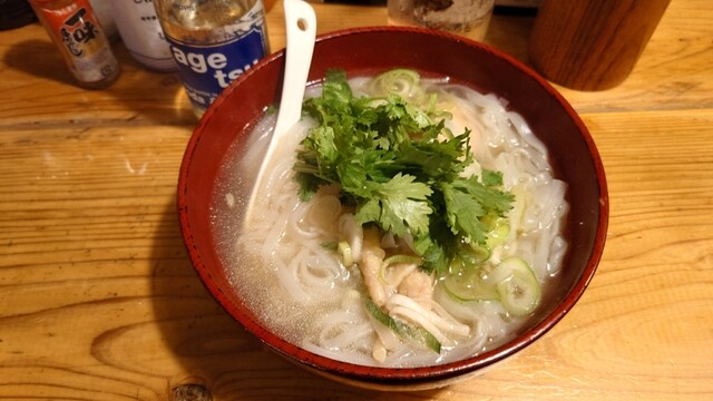白とうもろこし刺し、ホルモン盛りなどをやったあと、マッサマンカレーのあたま経由で鶏肉のフォーで締めました。店主のカープの矢野ばりの料理の守備範囲の広さに脱帽です。