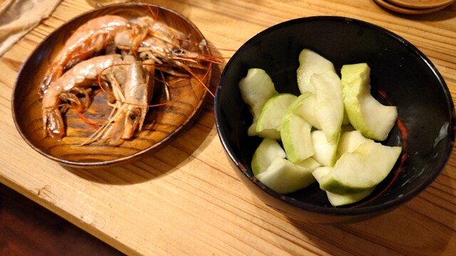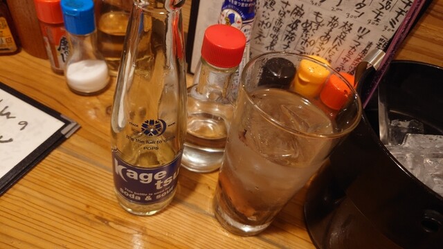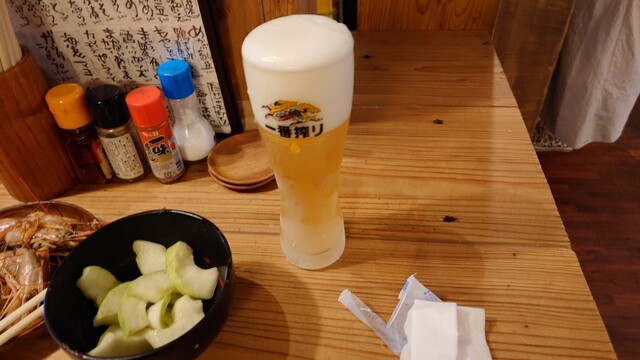 最初は生ビールにします。キンキンに冷えた一番搾りが瞬殺されました。続いてオールド・スクールな梅干しハイをいただきました。金宮1合と割材を別で注文できるのが良いですね。自分のペースで好きな濃度で楽しめます。