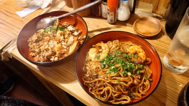 締めは海老黒焼きそばと海老黒チャーハンのダブルストッパーにしました。店主のカープの矢野ばりの料理の守備範囲の広さに脱帽です。