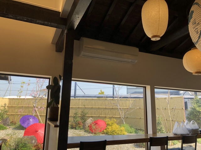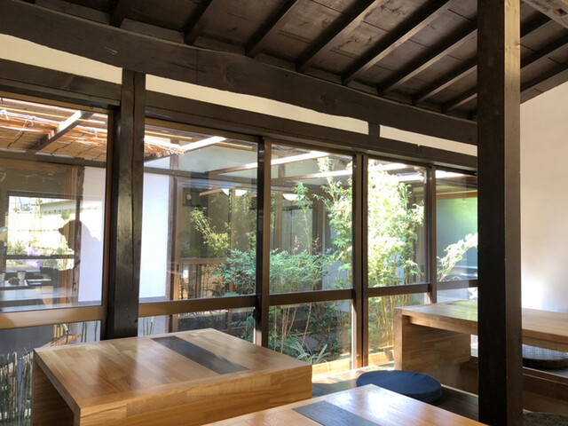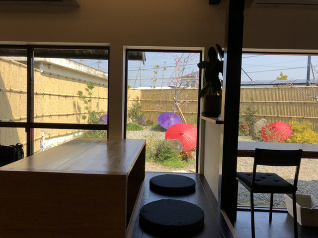 入るとお庭を眺めるカウンター席があります