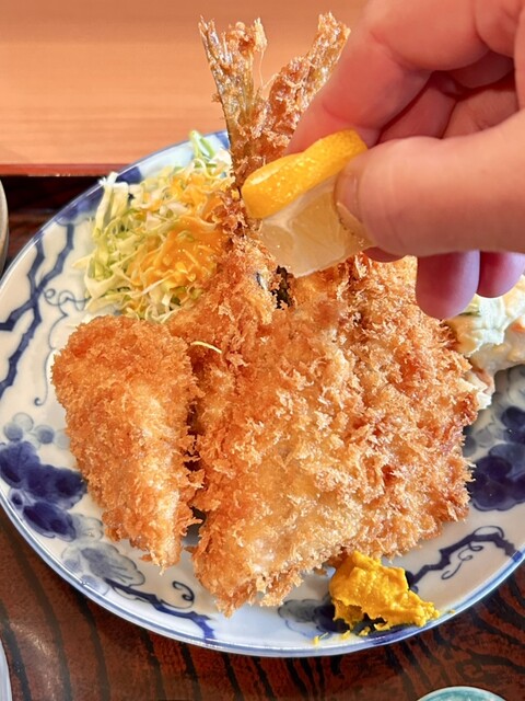 エリアの連食で海鮮句菜 三楽に開店一番乗りで来店,あじフライ定食1380円を注文しました,